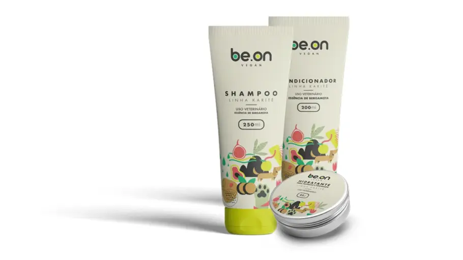 Uma linha de cosméticos veganos premium para pets é a aposta da Be.On Vegan, nova marca de higiene e beleza que chega ao mercado pet. A coleção conta com xampu de 250 ml que limpa profundamente sem agredir a pele, além de reduzir o frizz e facilitar o desembaraço dos pelos. Também reúne o condicionador de 200 ml que hidrata e nutre os pelos; e um hidratante reparador de 45 g para focinhos e patinhas ressecadas.