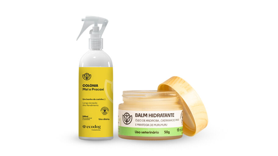 Já a Colônia Mel e Pracaxi possui uma fragrância doce e refrescante, perfeita para cães a partir de 12 semanas de vida, proporcionando uma sensação de banho recém-tomado.