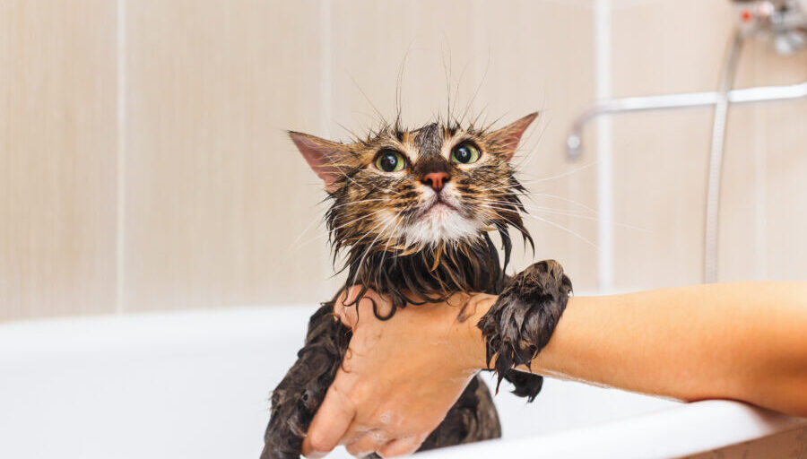 - Use a ducha em vez do chuveiro para evitar assustar o gato com o jato de água.