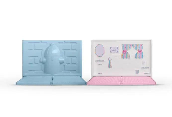 Na versão Candy Color, rosa e azul, o kit para fêmeas conta com superfície gradeada e um sistema que direciona o líquido de forma rápida e segura para o reservatório, evitando sujeiras, respingos e odores.