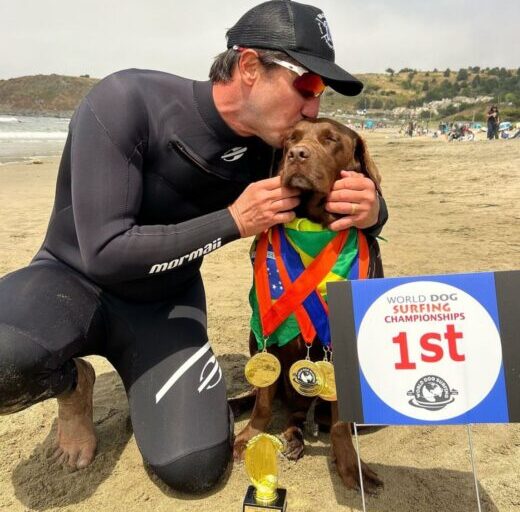O Campeonato Mundial de Surfe para Cães ocorreu no último domingo (4). Cacau conquistou quatro medalhas de ouro e uma de bronze para o Brasil.