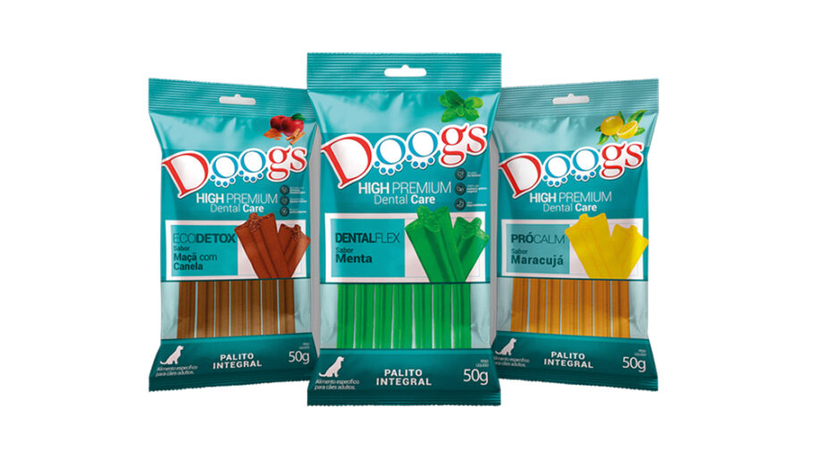 A linha Doogs Dental Care está disponível em três opções de sabores – maçã com canela, menta e maracujá. Todas ajudam na remoção de alimentos acumulados e são ideais para cachorros adultos.