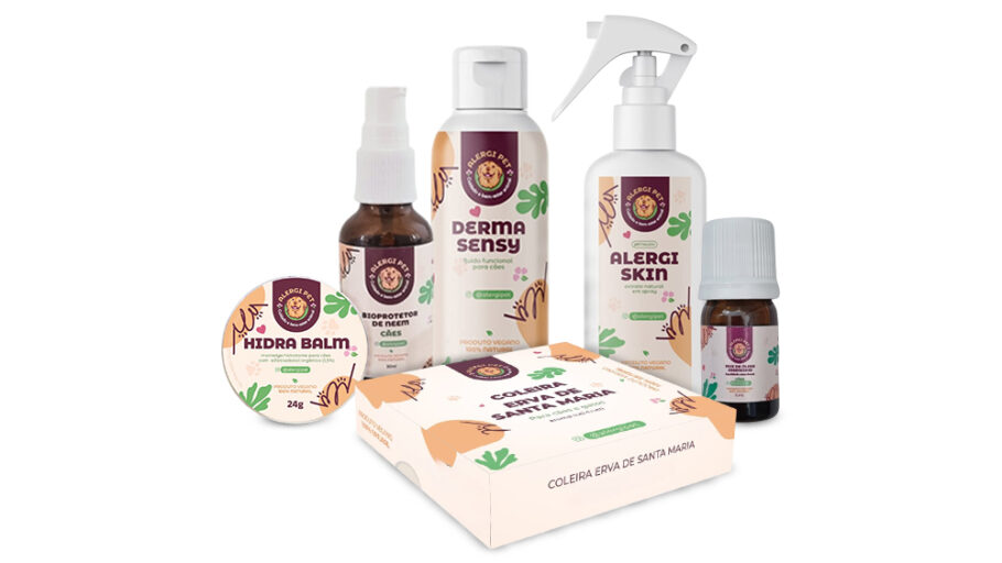 Já o Alergi Skin é um spray cicatrizante ideal em casos de dermatites e demais tipos de sensibilidade na pele. O Bioprotetor em Spray e a Coleira Natural (disponível em três tamanhos diferentes), possuem ação repelente, protegendo o animal de picadas e transmissão de doenças. Por fim, o mix de óleos, responsável por reduzir ansiedade e estresse dos pets.