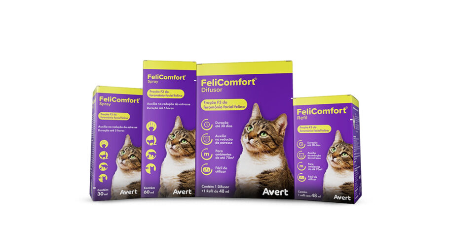 A FeliComfort é a cópia sintética do feromônio facial felino (fração F3). Quando utilizado no ambiente, auxilia na redução do estresse dos gatos, proporcionando sensação de conforto, segurança e bem-estar.