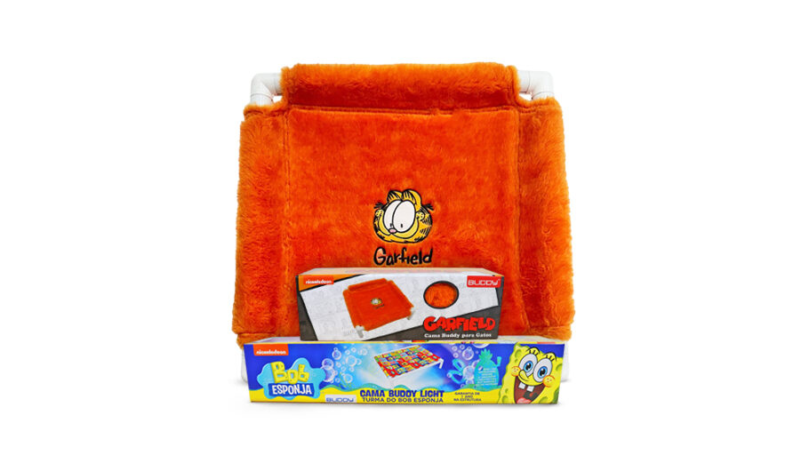 A cama no tema do desenho Bob Esponja é indicada para cachorros de pequeno e médio porte, proporcionando um sono de qualidade. Já a caminha no tema do Garfield é ideal para os gatos de todos os portes. Feita toda em pelúcia, é extremamente confortável.