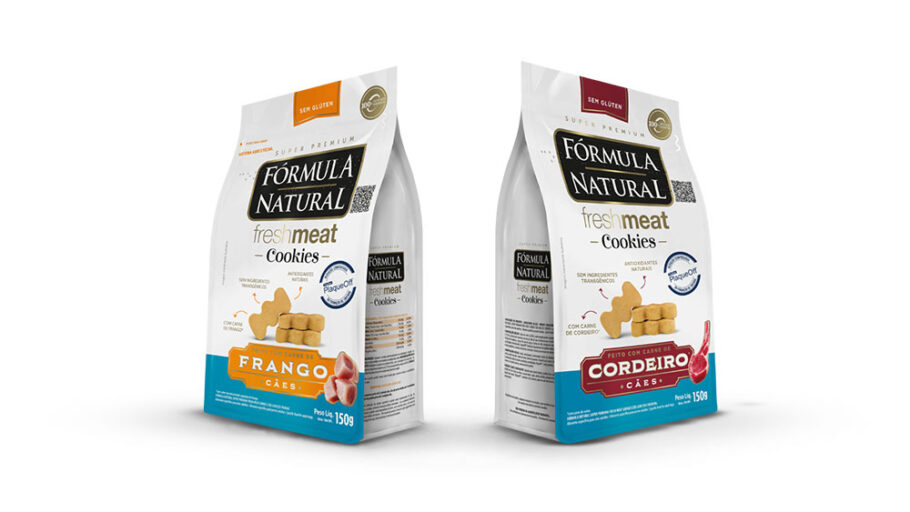 A Fórmula Natural Fresh Meat Cookies Cães está disponível nos sabores de frango e cordeiro, combinando crocância e cuidado oral por meio da inclusão do PlaqueOff que auxilia na redução da formação do cálculo dentário em pets.