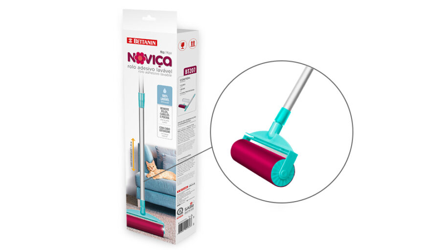 A Bettanin, reconhecida por seus equipamentos de limpeza, está lançando um produto inovador: o Noviça Mop Rolo Adesivo Lavável, ideal para remover pelos de pets.