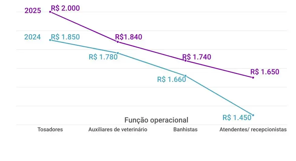 A comparação entre 2024 e 2025 confirma reajustes reais modestos, maior valorização relativa de funções técnicas e manutenção das desigualdades regionais no varejo pet