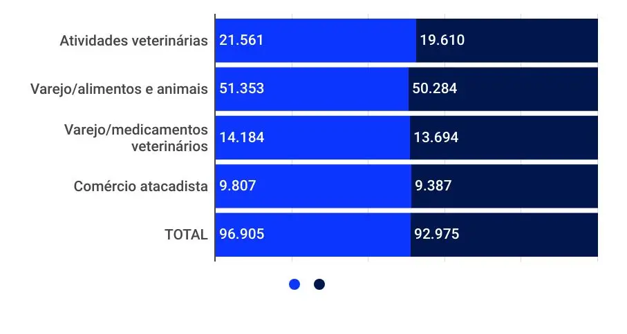 Para cada 100 contratações, houve 96 desligamentos em clínicas, hospitais, pet shops e na cadeia de abastecimento